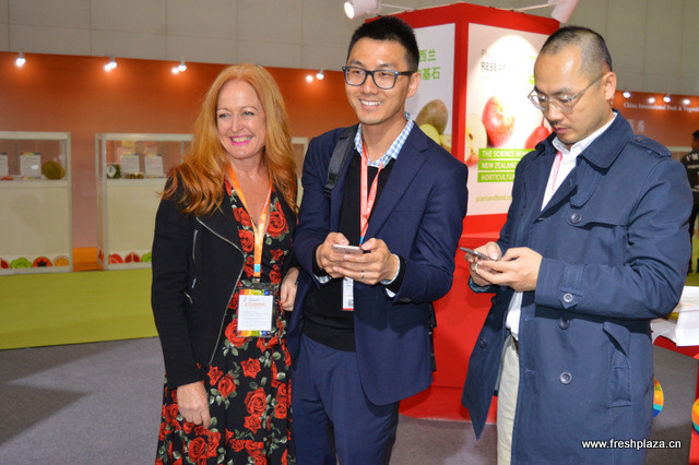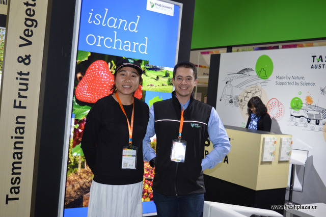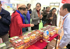 Interest from Chen's Sun for Australian produce at the stand of Fruit Growers Australia.