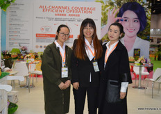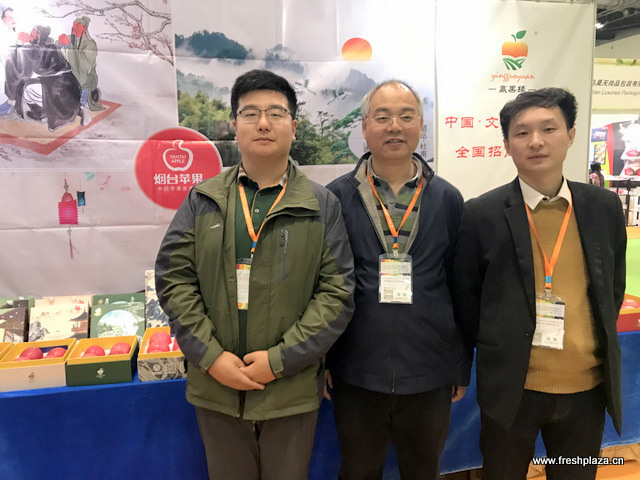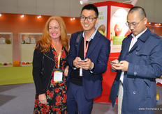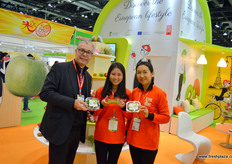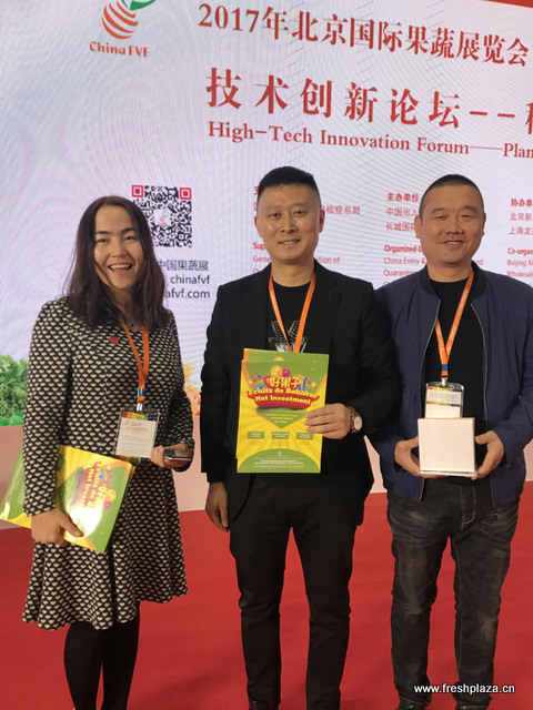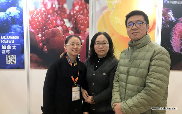 Jane Ping, Logistics Manager, Ling Niuxian, General Manager and He Weiguo of Fruitkii, a fruit sources, packer and distributor from Henan in Central China.