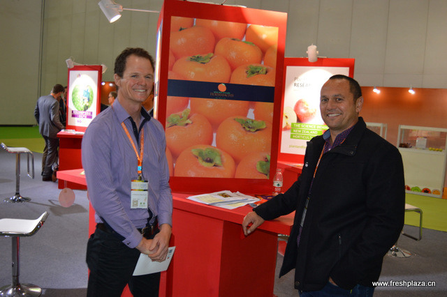 Duane Wells of NTL Horticulture, also Chairman of the New Zealand Persimmon Industry Society, together with Jim Tarawa, Avocado Procurement Manager at FreshMax. New Zealand persimmons received market access to China earlier in 2017 at the end of the season. The coming year the sector is hopeful to launch exports.