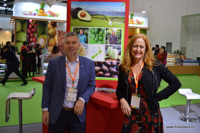 Tony Ponder, Chair of New Zealand Avocado, together with Jen Scoular. Avocadoes are the next New Zealand product on the list for market acces, with negotiations almost completed. Some hope access will be granted in February 2018.