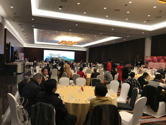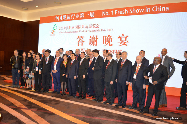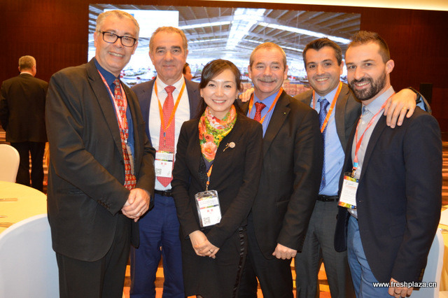 The full French delegation at the gala dinner organised in the evening of the first day of the exhibition. In the photo are Daniel Sauvaitre, Secretary General at Interfel, Daniel Soares, International Marketing Manager at Interfel, Jacques Rouchaussé, President at CTIFL, Sylvain Mazeaud of Condifrance and Jean-Pierre Caruel of Sofreuileg. France has a number of fresh products it is exporting to China, including kiwifruit and apples.