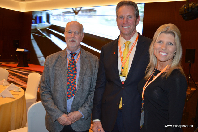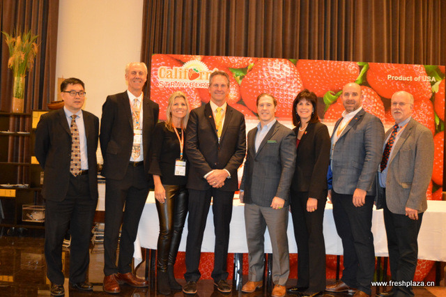Mike of Californian strawberries together with Paul Allen, president at Mainstreet Produce and Alexandra. Mainstreet Produce is a Californian strawberry grower. Supported by the Californian Strawberry Committee, the company has recently received access to enter the Chinese market and start exporting its fresh strawberries to China.