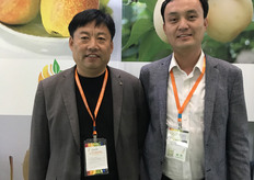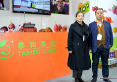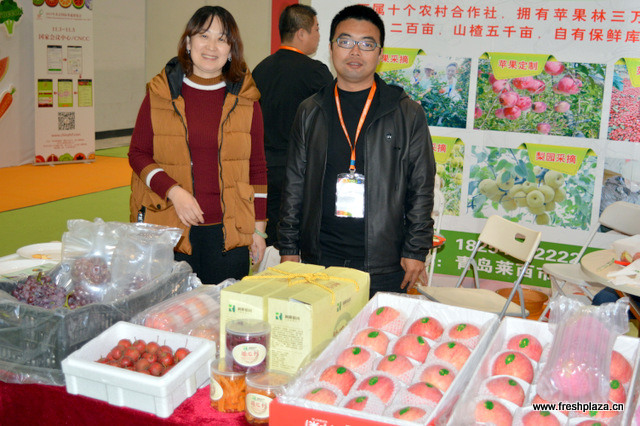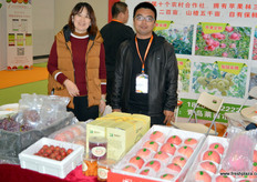 The Qingdao Run Farming Bai Chuan Cooperative grows apples, peaches and grapes. On the photos are Lin Qing, general manager, and Du Honglei, Deputy General.