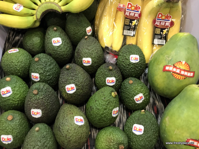 Avocados, bananas and guava all from the Philippines and marketed by Dole. Philippines trade officers are lobbying to receive market entry for the country's avocados. All it's guave are non-GMO, which is a marketing advantage in China as most of the domestic guave crop is GMO.