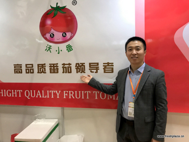 Visitors are eagerly trying some tomatoes at the stand of Volpusi, tomato grower and breeder from Shandong Province in China.