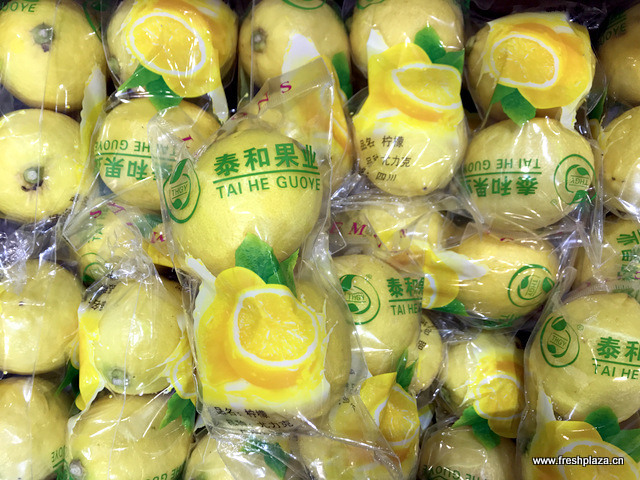 Chinese domestic lemons branded and marketed by Beijing importer Tai He Guo Ye.
