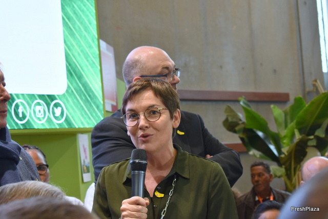 A speech by Annick Girardin, the Overseas Territories Minister at the stand of La Banane de Guadeloupe & Martinique. The company presented a new, sustainable French banana