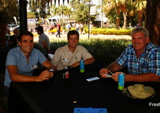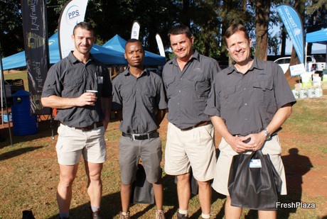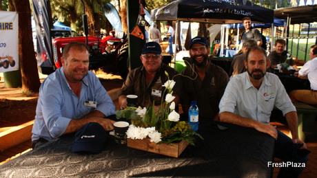 Jakoos Scheepers of citrus farm Gonjah Boerdery in Patensie, Eastern Cape, with Cornell Vermaak (also Gonjah) and Merwe van der Watt of Cambria, also an Eastern Cape citrus farm.