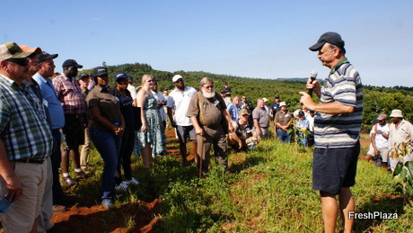 Dr Frans Kruger of Lowveld Technical Services and expert on the export protocol of Maluma, addresses delegates during an orchard visit.