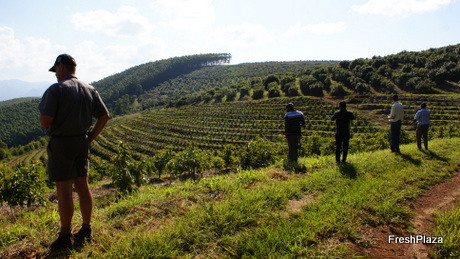 Daniel Arispe of TAL SA (Peru), Abraham de Villiers of the Allesbeste nursery, Dr Avner Silber of the Volcani Institute in Israel, Wessel Lemmer of ABSA, Dr André Ernst, Zander Ernst and Edrean Ernst of Allesbeste Boerdery.