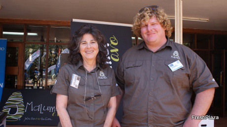 Jandri Duvenage of RSA Market Agency with Wynand Espach of Amorentia Estate nursery in Politsi.
