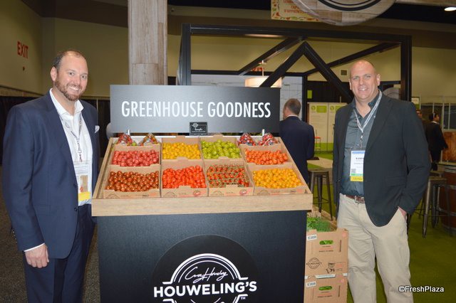 David Bell and Ruben Houweling with Houweling's Tomatoes show a selection of the company's tomatoes.