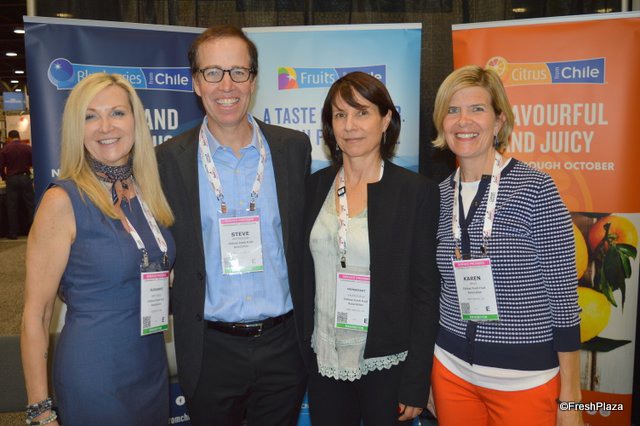 Susanne Bertolas, Steve Hattendorf, Monserrat Valenzuela and Karen Brux with Fruits from Chile.