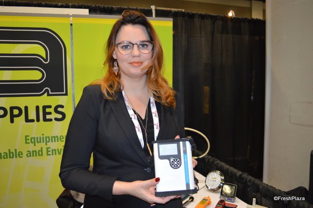 Chelsea Gaya with Felix Instruments demonstrates the F-750 Produce Quality Meter to show participants.