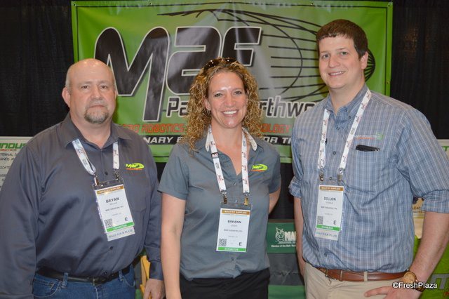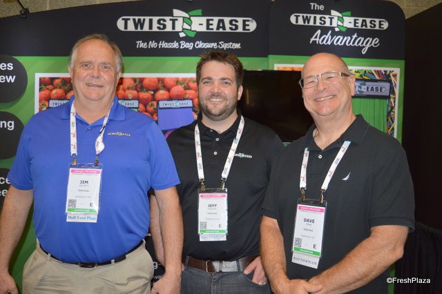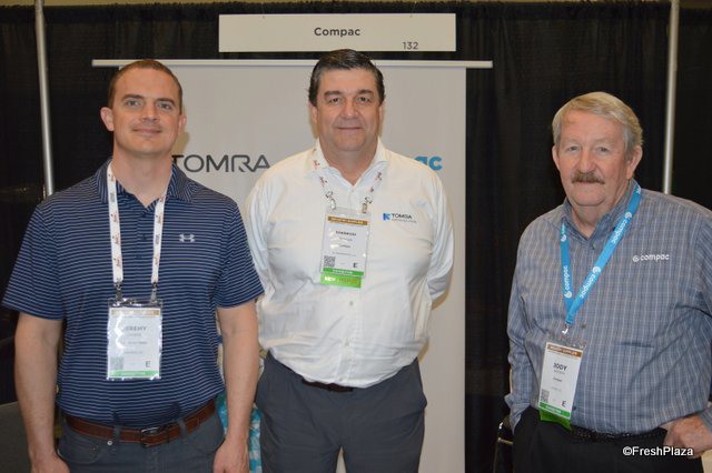 Jeremy Loewen with Van Doren Sales, Diarmuid Meagher with Tomra Sorting Solutions and Jody Jackson with Tomra/Compac.