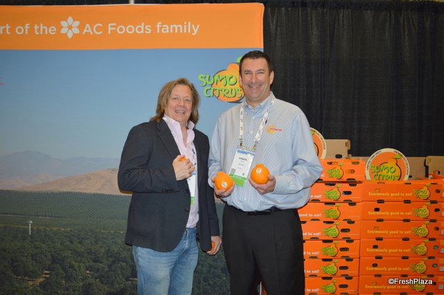 Brett Burdsal and Dan Kass with Suntreat proudly show Sumo citrus. The company just finished a successful Sumo season.
