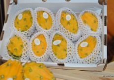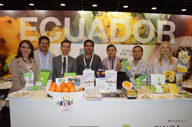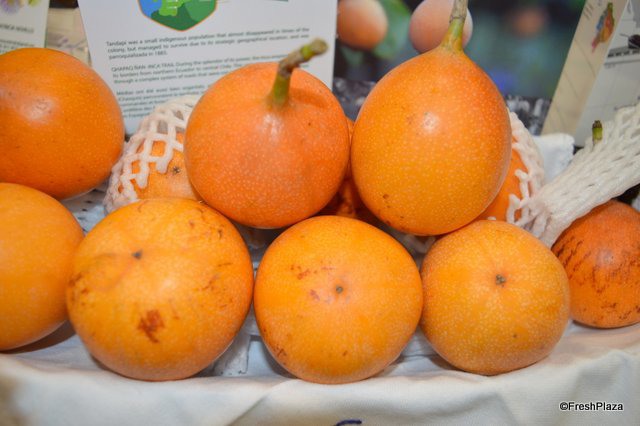Exporters from Ecuador proudly show their beautiful products: yellow pitahaya and granadilla.