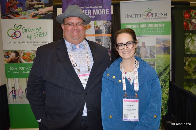 John Toner and Courtney Doby with the United Fresh Produce Association smile for the camera.