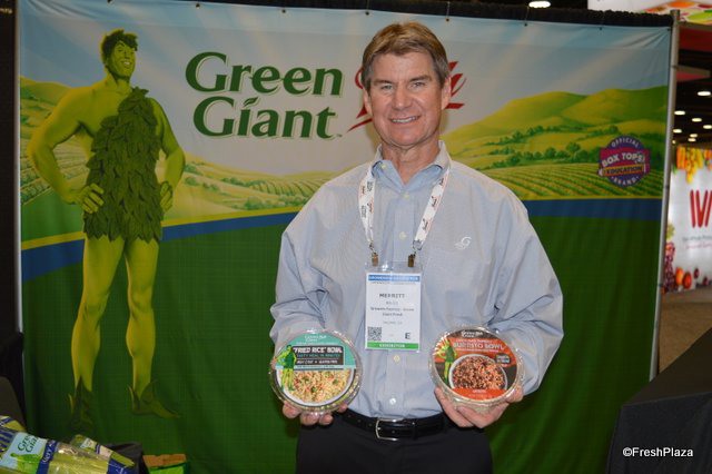 Merritt Bruce with Growers Express - Green Giant Fresh proudly shows a Fried Rice Bowl and Burrito Bowl that were recently launched as part of a line of six.