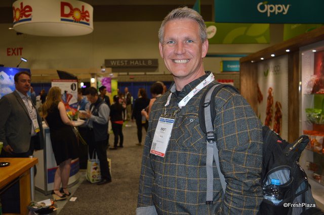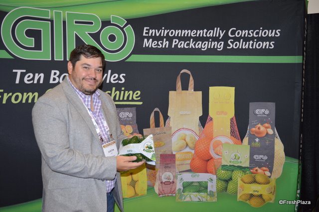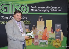 Justin Lenz with Giro Pack shows the company's latest product: the handle bag can be used for any produce variety.