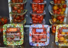 Close up of the new stackable snackables: cabernet estate reserves, heavenly villagio marzano tomatoes and a maverick mix.