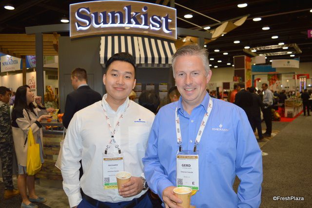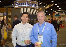 Richard Nguyen and Gerd Uitdewilligen with Emerson were visiting the Sunkist booth to try some ginger and coriander infused mandarins.