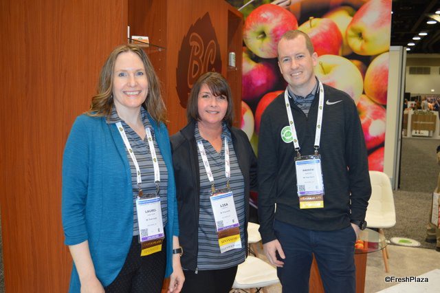 Laurel van Dam, Lisa Linton and Andrew Sandre proudly represent BC Tree Fruits