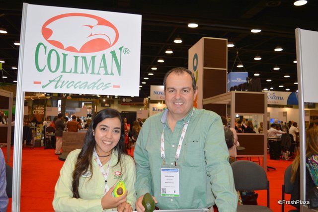 Mariana Palma Camarena and Guillermo Cardenas with Coliman proudly show avocados grown in Michoacán, Mexico.