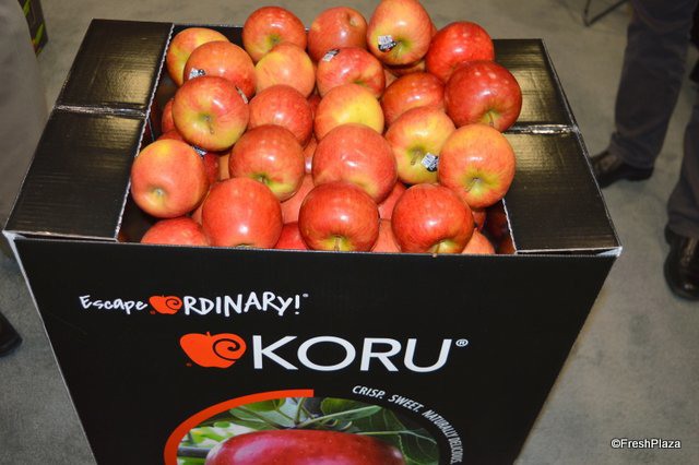 Koru apples from New Zealand arrived in North America a week ago.