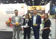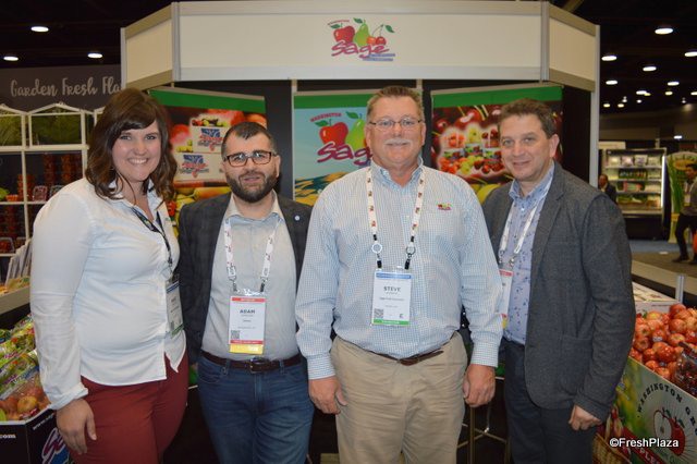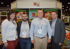 Kaci Komstadius and Steve Kuebler (second from the right) with Sage Fruit receive a visit from Adam Donikian and Frank Bondi (far right) with Sobeys.