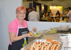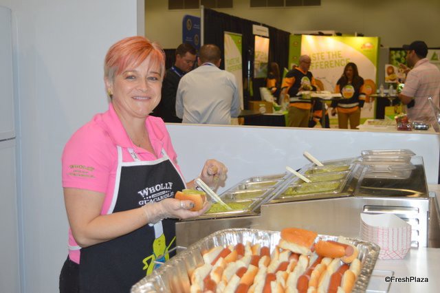 Hotdogs and guacamole at the booth of Wholly Guacamole.