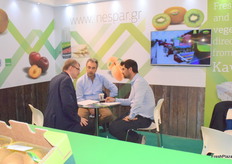 The team from Nespar in talks with a customer, seated in the middle is Michael Xekarfotakis and to the right is Konstantinos Maragkozis.