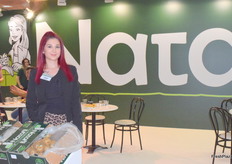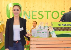 A hostess, currently studying agriculture and gaining good experience about how these types of events work, at the Nestos stand.