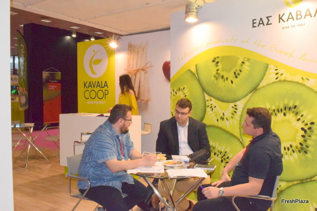 Hard at work at the Kavala Coop stand, with Sarantidis Panagiotis, from the company, seated in the middle.