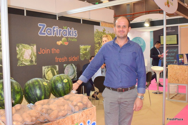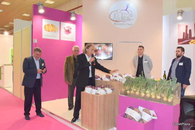 Ioannis Stavrou from Fokeon Gaia, presenting their new brand of fresh potatoes and onions at the show.