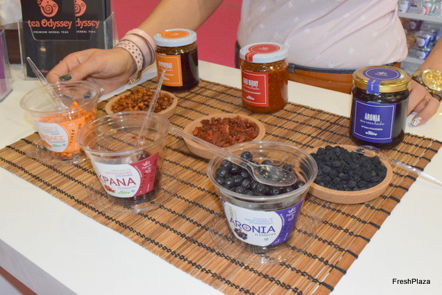 A wide variety of 100% pomegranate juices could be tasted by Freskon visitors at the Ktima Cheimonidi stand. The company recently won a taste award for their pomegranate green tea soda, which is sweetened with stevia.