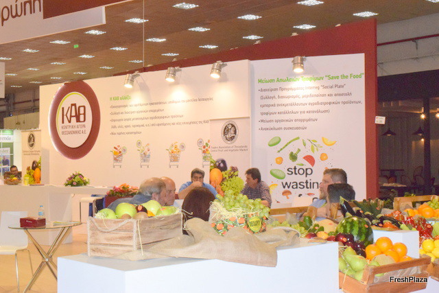A view of the Traders Association of Thessaloniki Central Fruit and Vegetable Market stand.