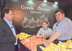 Deep in conversation, a quick pause for the camera at the Greek Onions Antonakis stand.