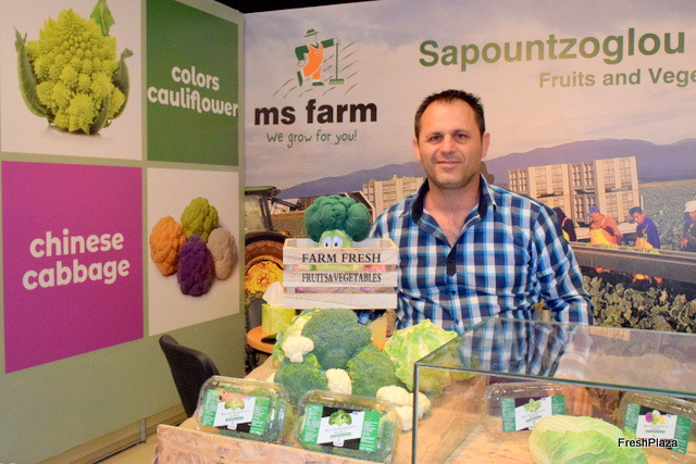 Markos Sapountzoglu, promoting his newest brand for broccoli, cauliflower and cabbage, Ms Farm.