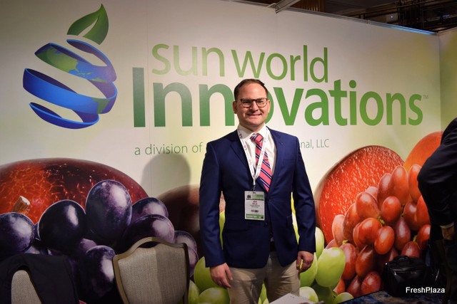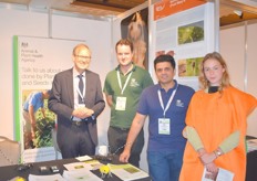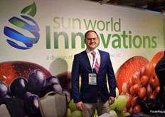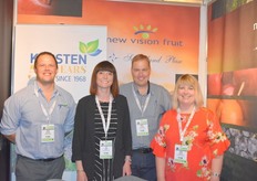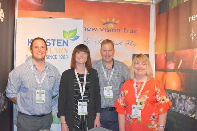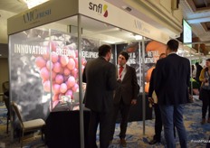 Mauricio Ventura (Sun World Innovations), Alberto Goldbacher, Rupert F. Maude (El Ciruelo) at the stand of El Ciruelo.