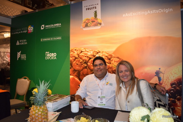 Also Procolombia was present and the show and were joined by two exporters. Rodolfo Ahumada, Commercial Director of the firm Pacific Fruits on the picture with Nathalia Gonzalez from the company Bengala Agrícola.