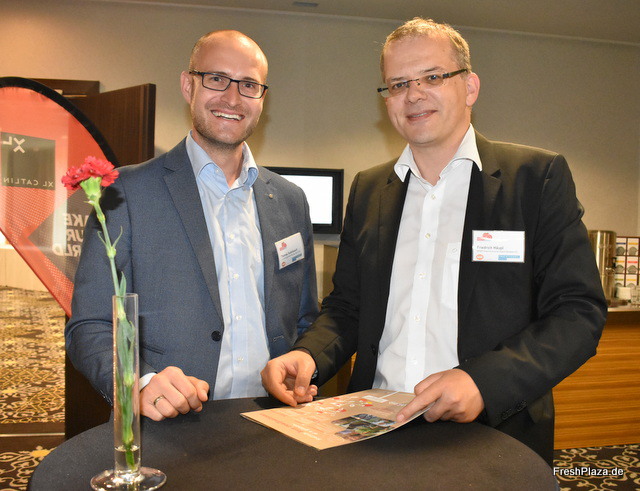 Andreas Schmitt of the Fachschule Gemüsebau talking with mr Florian Wolz with Franken Gemüse GmbH