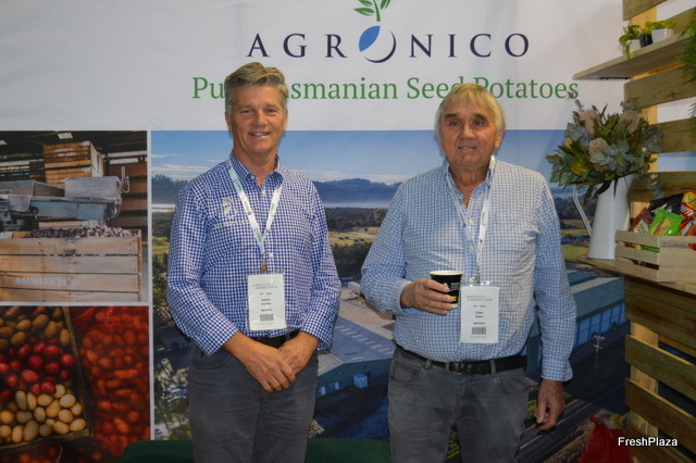 Robert Graham and Julian Shaw at Agronico who supply seed potatoes from Tasmania.