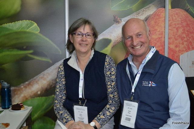 Husband and wife, Aina and Scott Price from R&R Smith organic apple growers.