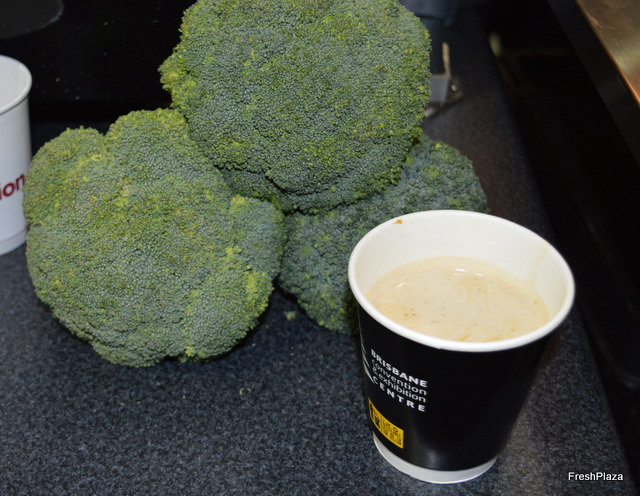 A surprisingly tasty Broccolatte at the Hort Innovations stand.