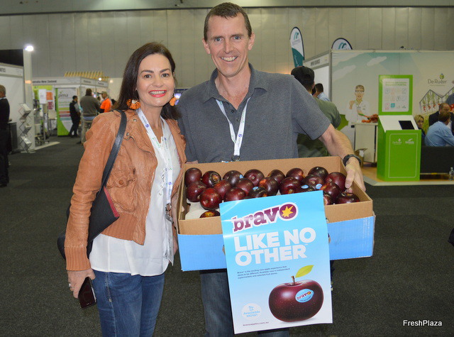 Nardia Stacy and Steel Jacob handing out Bravo apples!