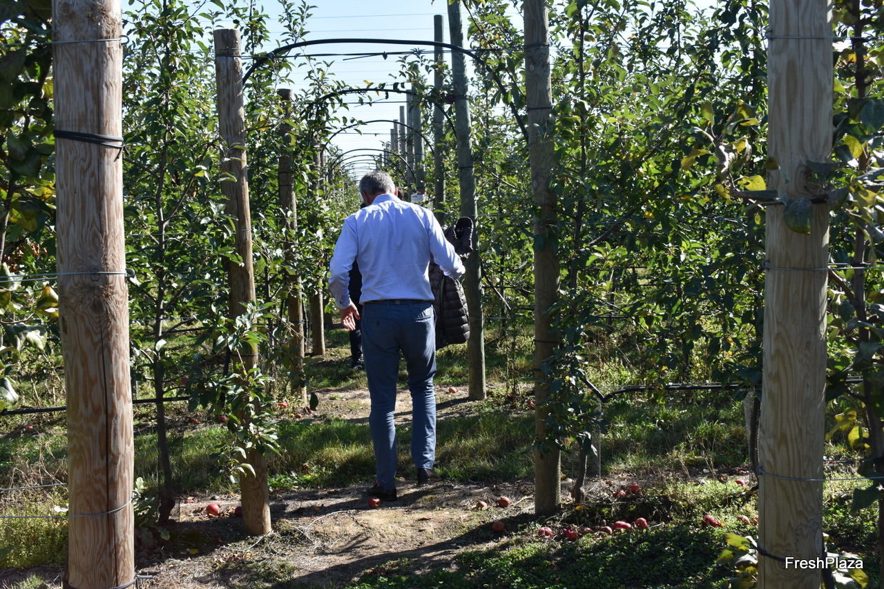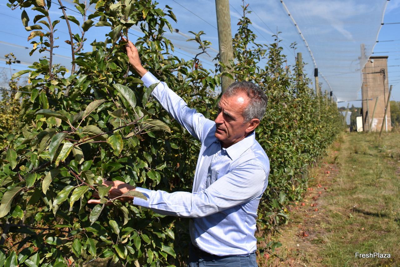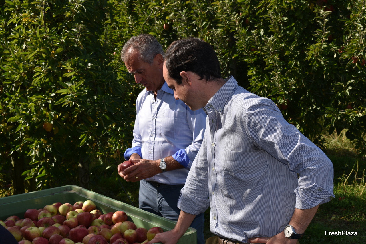 Marc Rauffet and Arnaud de Puineuf inspecting freshly picked apples