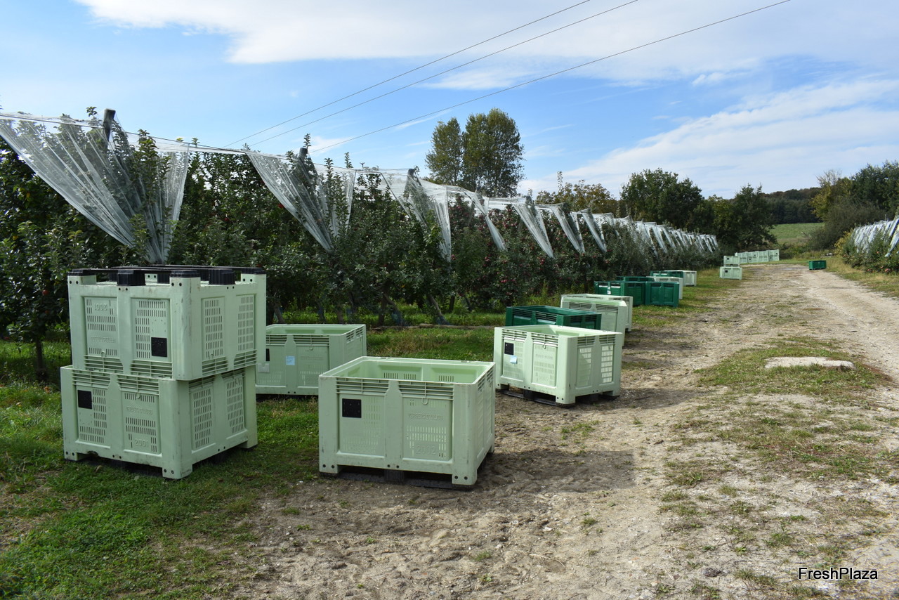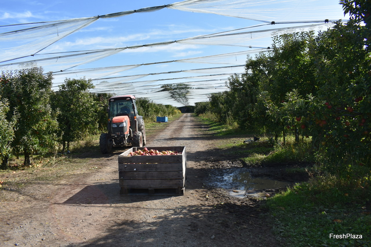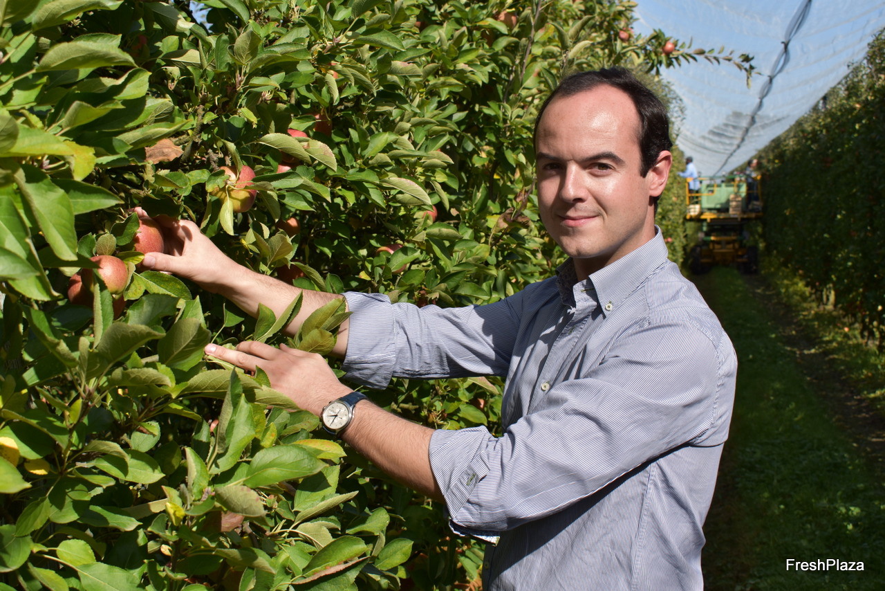 Marc Rauffet and Arnaud de Puineuf inspecting freshly picked apples