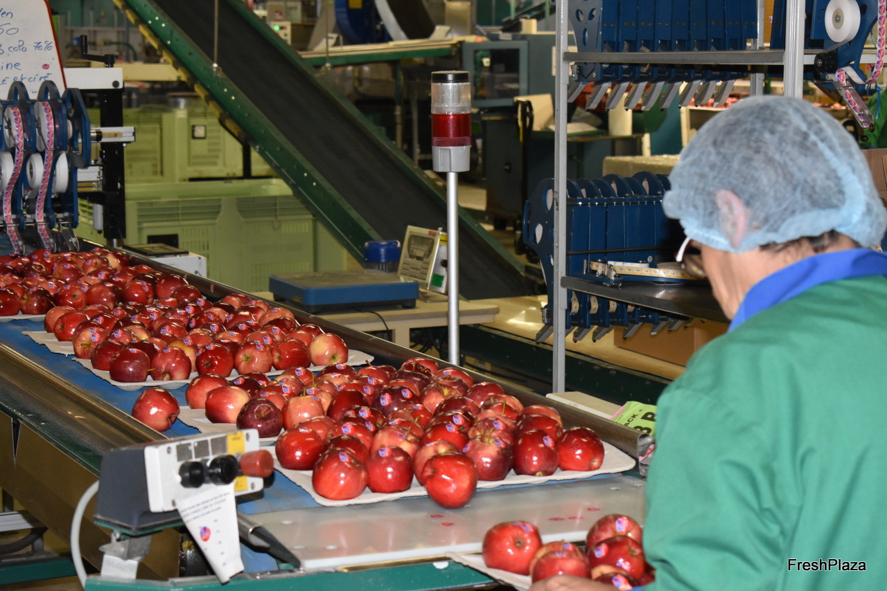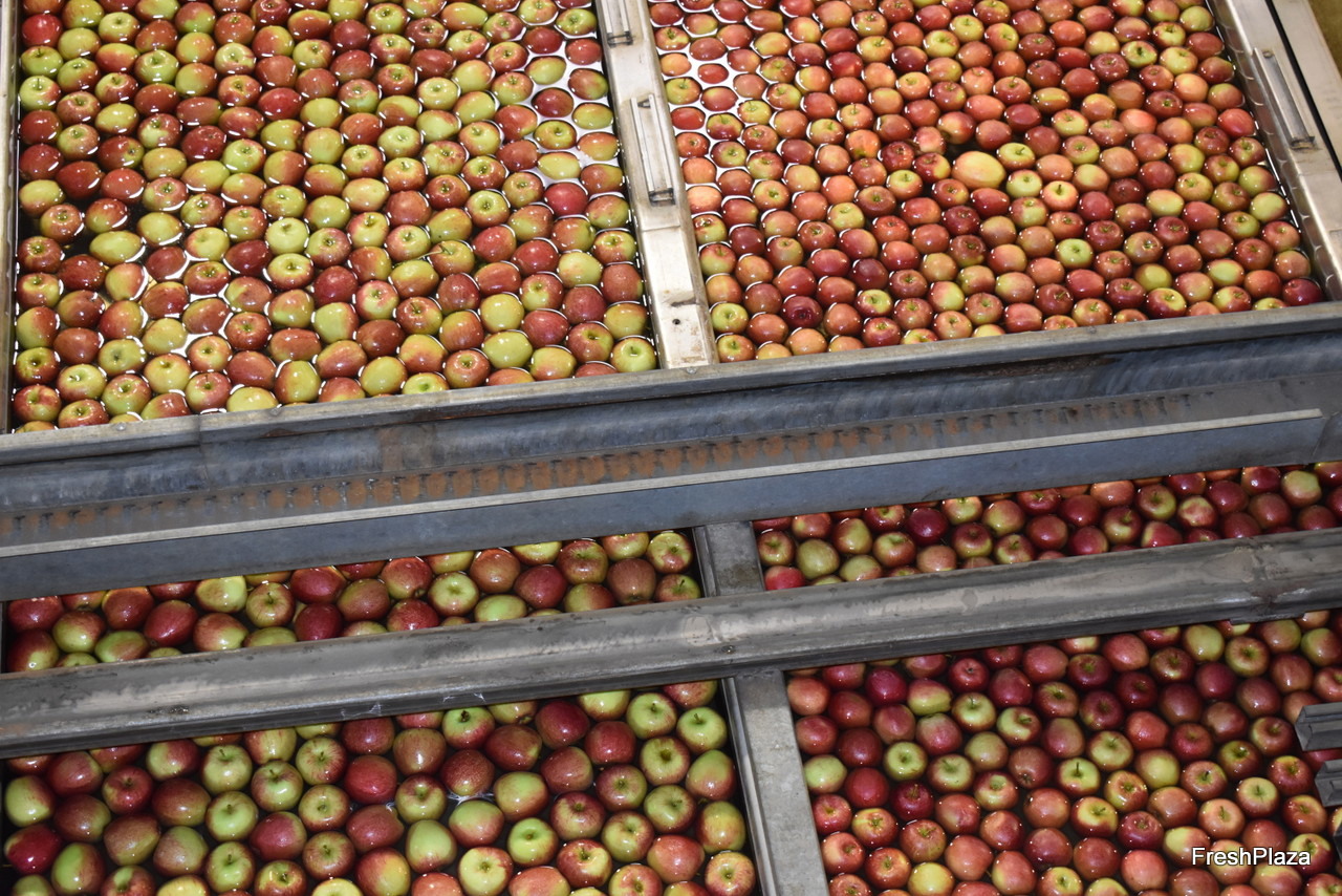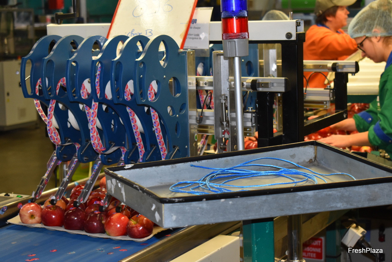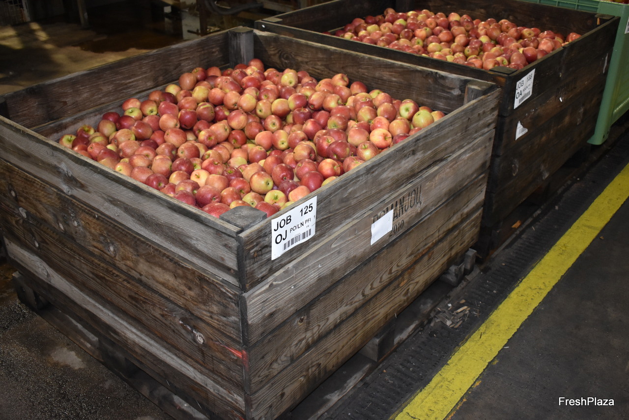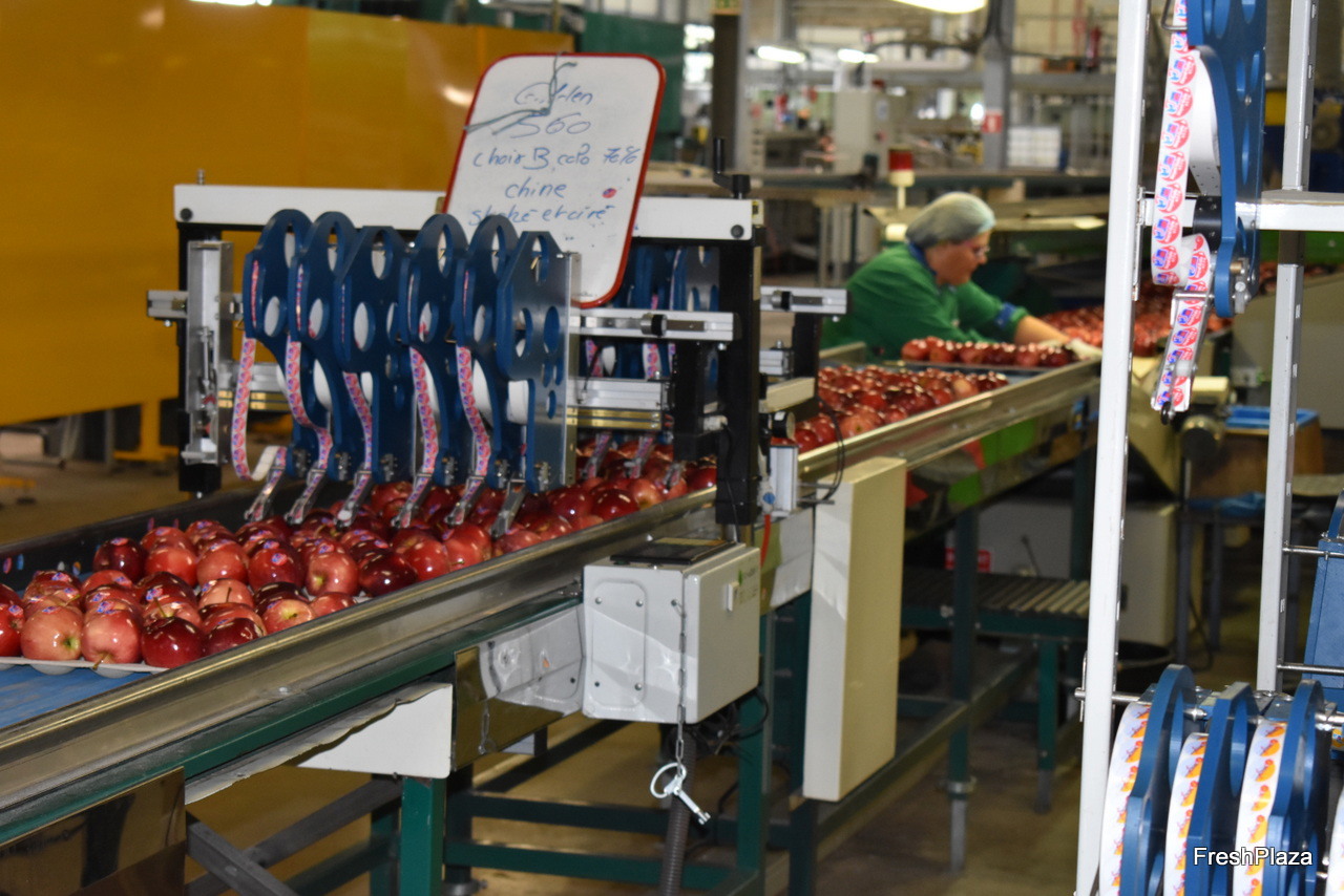 Apples intended for the Chinese market are provided with a wax coating before boxing