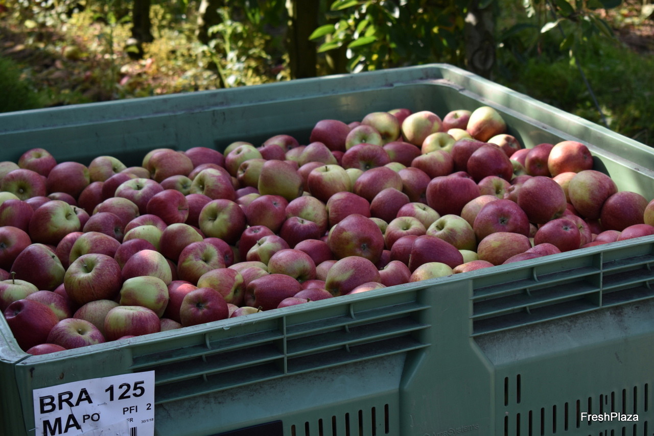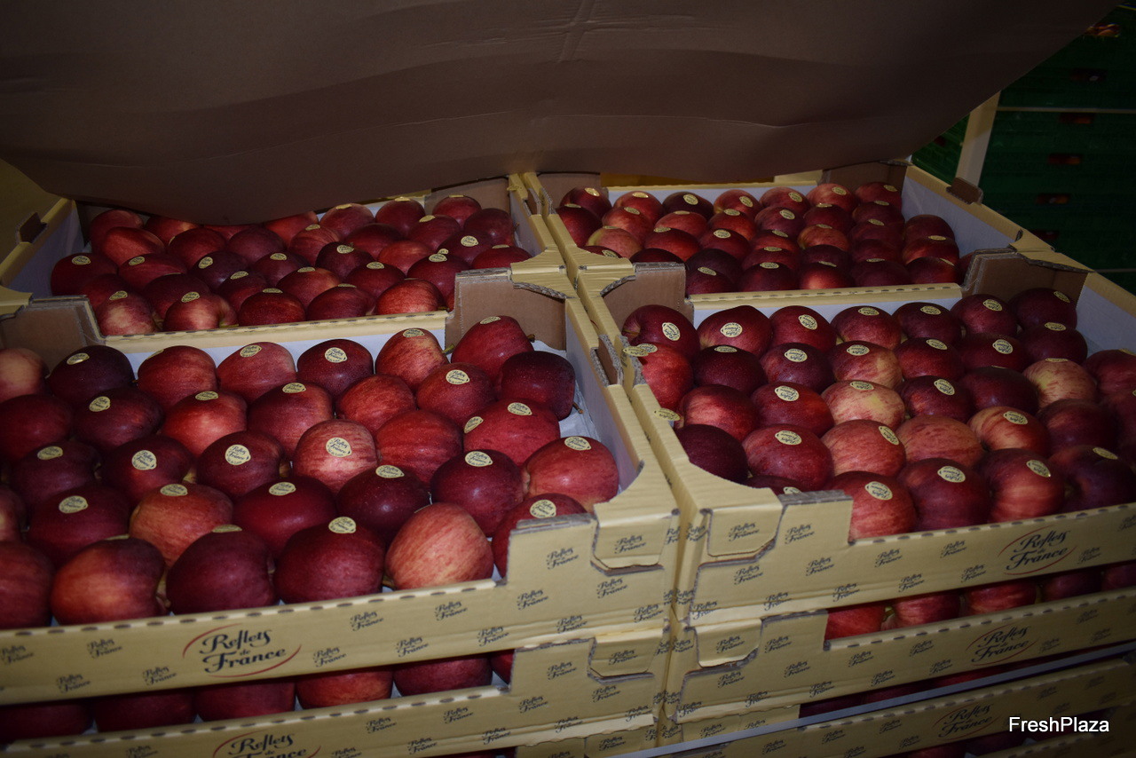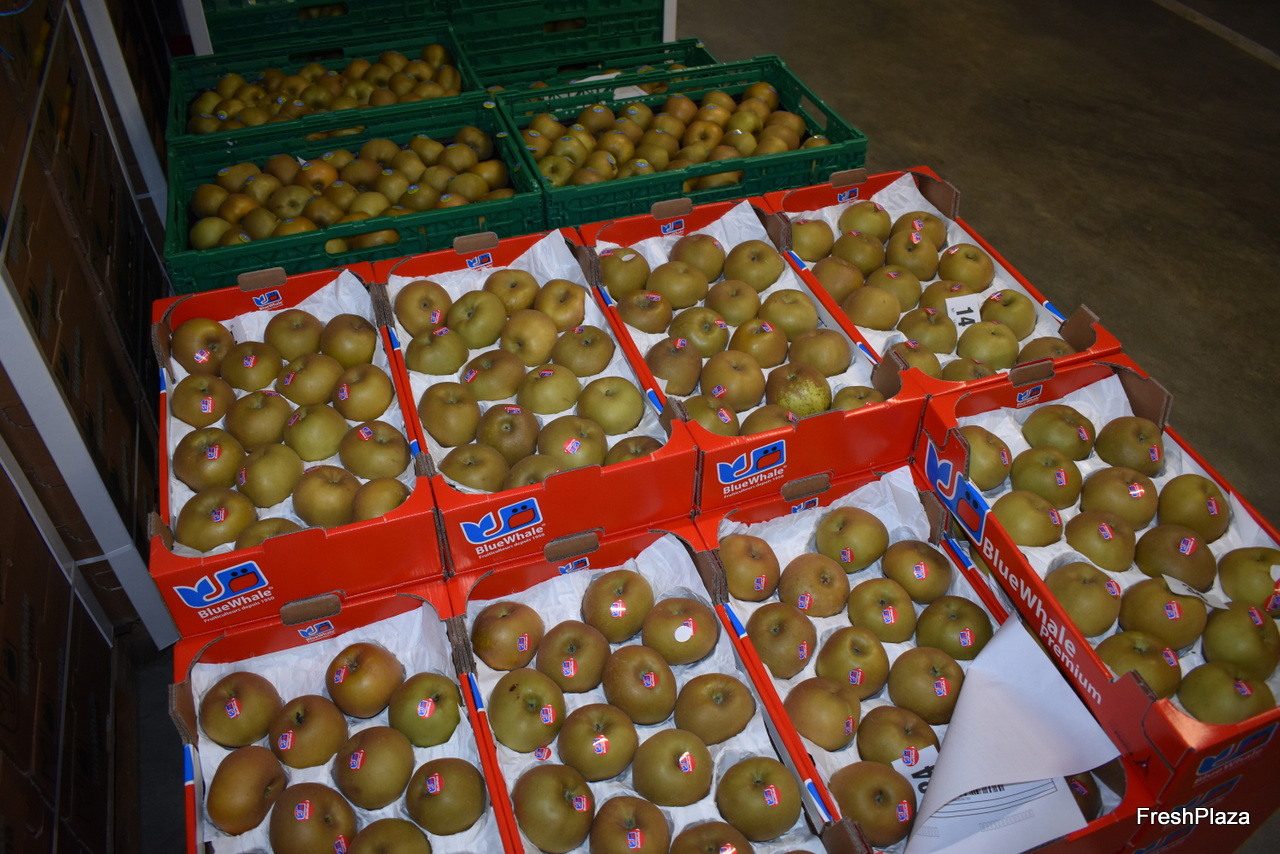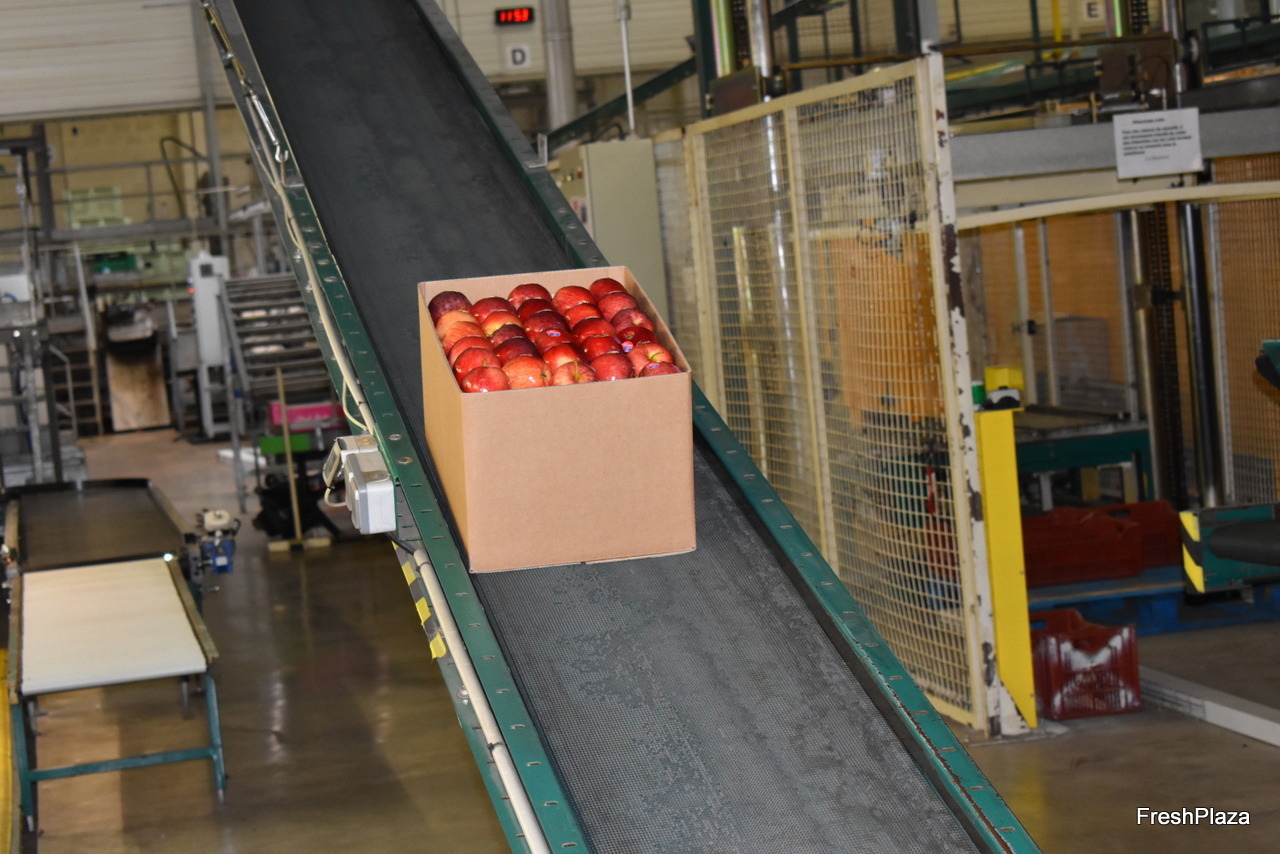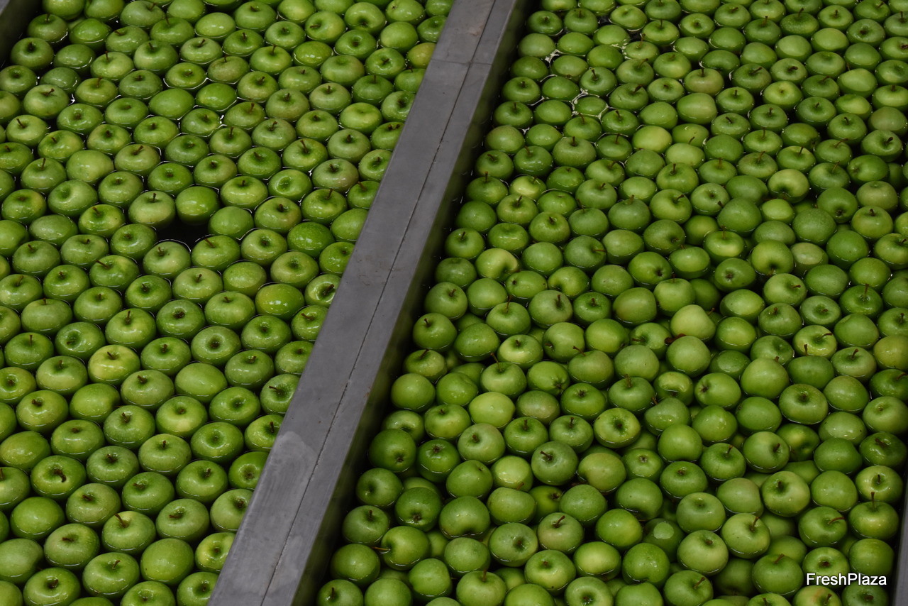 Apples intended for the Chinese market are provided with a wax coating before boxing